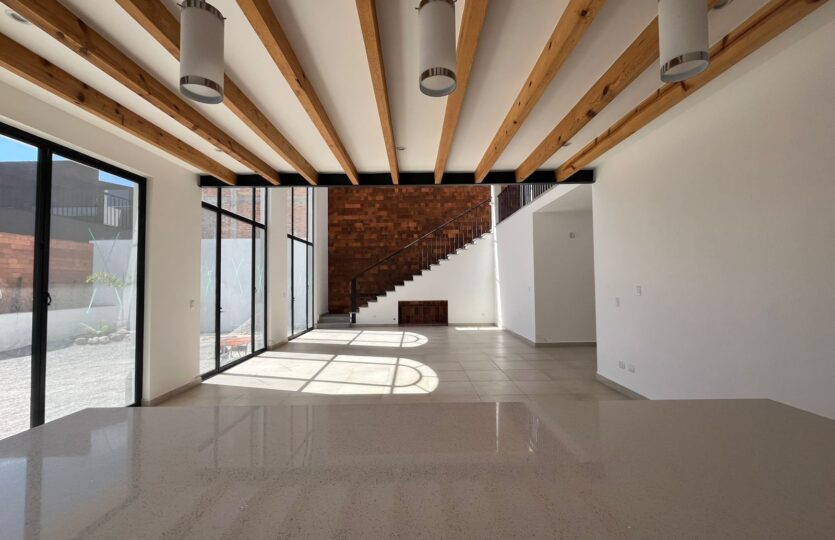 Casa Leo is a unique residence that blends the essence of Mexican architecture with a contemporary and elegant style. Its design reinterprets traditional elements such as arches and brickwork, creating a warm and modern atmosphere. The main floor features the master bedroom, a stunning double-height living room, an open dining area, and a spacious kitchen perfect for enjoying natural light and relaxed living. Upstairs, two ensuite bedrooms and a cozy TV room offer privacy and comfort. Casa Leo is more than a house it’s a home where tradition and modern design come together beautifully, ideal for those seeking style, comfort, and a true connection to Mexico’s architectural heritage. Lot area: 4,305 ft2 Construction: 3,913 ft2