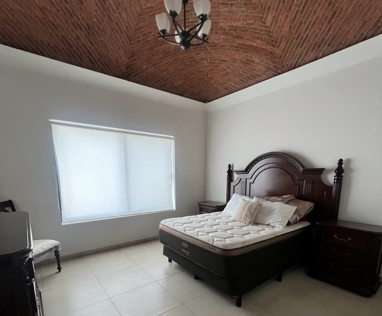 Enjoy the comfort of single-level living in the exclusive Malanquín Golf Club. This residence offers three spacious bedrooms, each with a full bathroom and walk-in closet, plus a guest half bath. The kitchen, with an adjoining laundry room, connects seamlessly to the living and dining areas, which open onto a covered terrace with a jacuzzi and private garden. The main terrace boasts an unparalleled view of the reservoir perfect for enjoying unforgettable sunsets. The home includes a two-car garage loand is located within a private residential area that combines privacy, nature, and comfort. Monthly rent: $39,000 MXN per month, unfurnished. Long term lease only (minimum stay of one year). Could be rented with furniture higher price .
